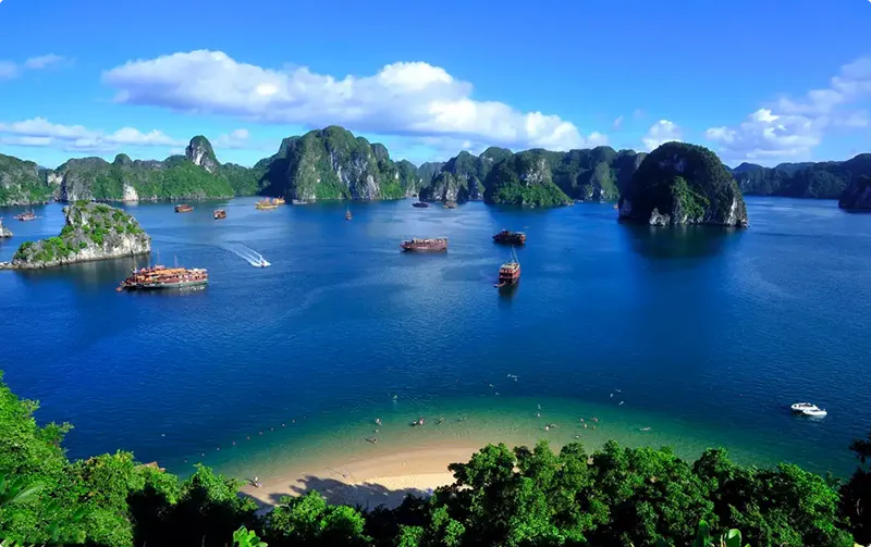 Back onboard, continue cruising to Luon Cave, exploring the lagoon by sliding through the water tunnel, enjoy the peace of the bay and wild life.