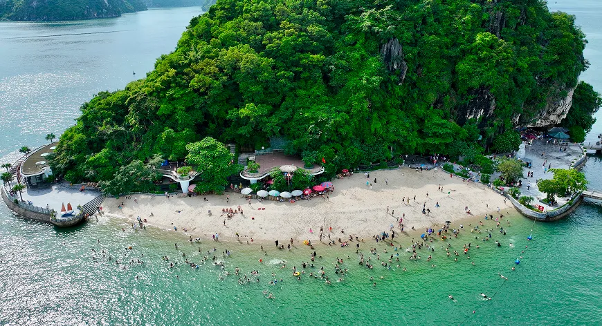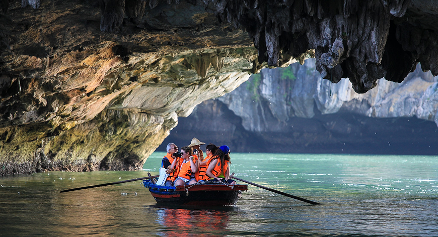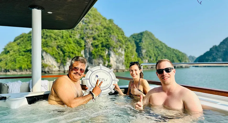 Embark on curated excursions to iconic sites like Sung Sot Cave, Luon Cave, and Titov Island via kayaking, bamboo boat rides, or short nature hikes. On board, guests can unwind with jacuzzi sessions, music at sunset, and crafted beverages under the open sky.