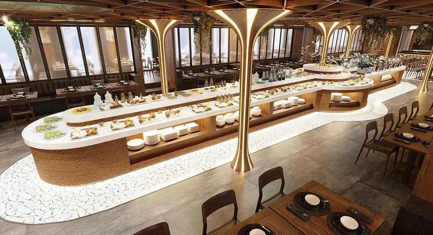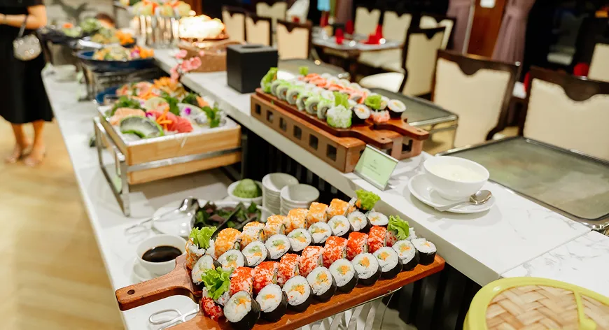 A world-class buffet prepared like a culinary art show, where hundreds of dishes are meticulously selected from the finest fresh ingredients and crafted by seasoned chefs. From international delicacies to regional specialties, each dish carries its own distinctive mark — a harmony of refined presentation and explosive flavors.
