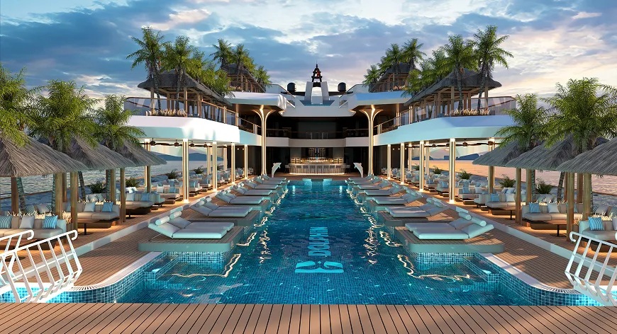 Dolphin Halong Cruise offers a versatile setting for upscale events at sea. The 200m² conference room is ideal for executive meetings and private sessions, while the open-kitchen restaurant (700m²) transforms effortlessly into a banquet hall or gala dinner venue with an indoor stage. For more dynamic moments, guests can host art performances under the iconic domed stage, lively pool parties in the heart of the bay, or intimate outdoor BBQs under the stars—making Dolphin the ultimate floating destination for both business and celebration.