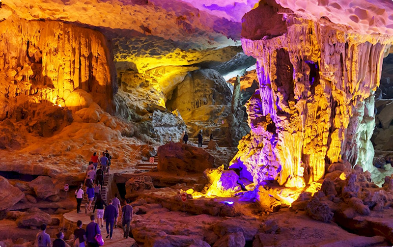 Back on boat and cruising to a very beautiful cave named Surprise cave with thousands of stalactites and stalagmites