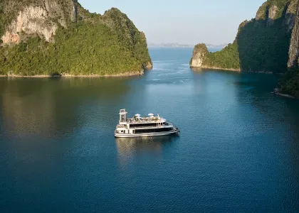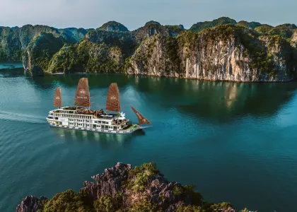 Kayak or take a traditional bamboo boat through limestone karsts, or relax in the large 4-season saltwater pool (300m²) - the largest in all Halong Bay tours.