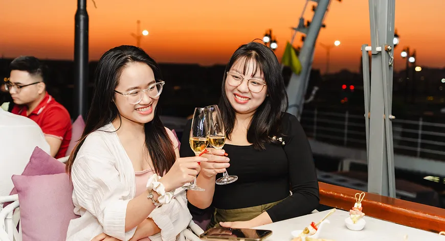 Whether it’s a chilled cocktail at golden hour or a late-night sip with live acoustic music, the bar and lounge space aboard IRIS Cruise offers an ambient setting to unwind and connect—accompanied by panoramic views and curated playlists.