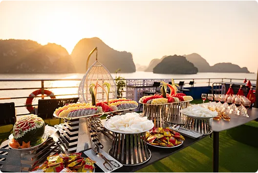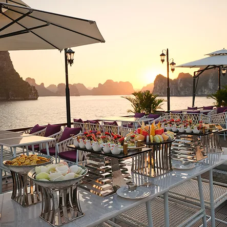 - 7-hour cruise through Halong Bay